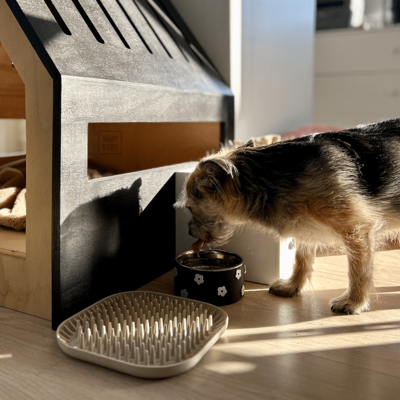 Pre milovníkov minimalizmu a prírody zároveň. Miska pre psa a mačku MARYBARY ČIERNO-BIELA LÚKA je dizajnový kúsok, ktorý zaujme svojou eleganciou – hlboká čierna farba kontrastuje s jemnými 3D bielymi kvietkami, ktoré pripomínajú rozkvitnutú lúku v monochromatickom štýle.